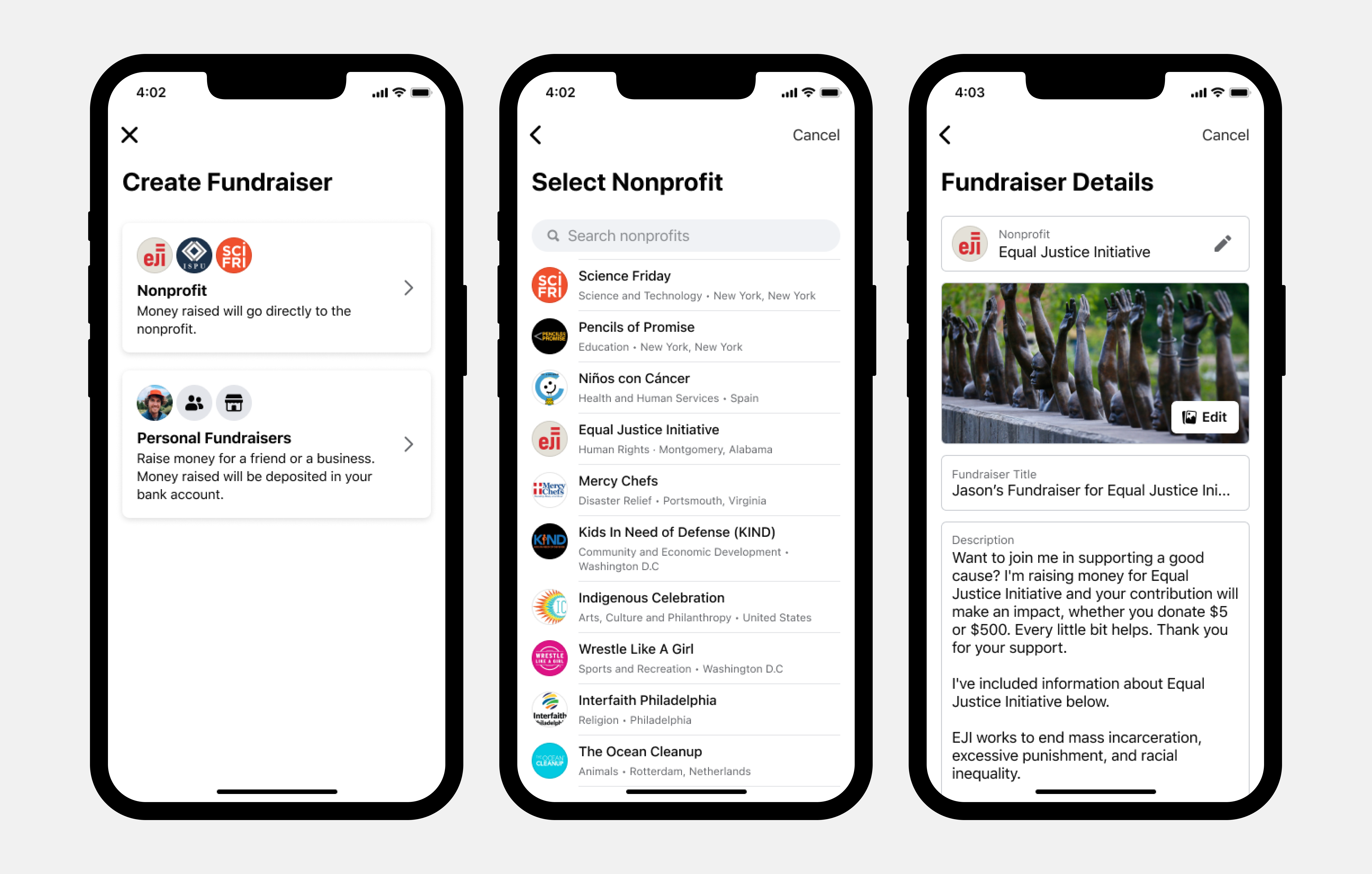 Facebook fundraisers